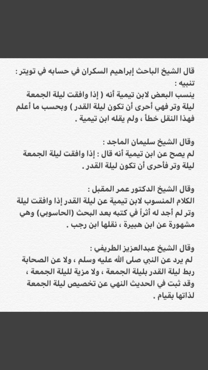 عبدالرحمن السماري On Twitter بعد مغرب اليوم الخميس ستأتي ليلة الجمعة وهي ليلة ثلاث وعشرين فهي ليلة وتر وليلة جمعة يقول شيخ الاسلام ابن تيمية اذا وافقت ليلة الجمعة احدى