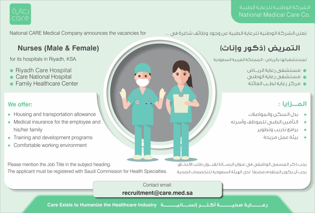 Care رعاية V Twitter تعلن الشركة الوطنية للرعاية الطبية عن وجود وظائف شاغرة للتمريض في مستشفيات رعاية