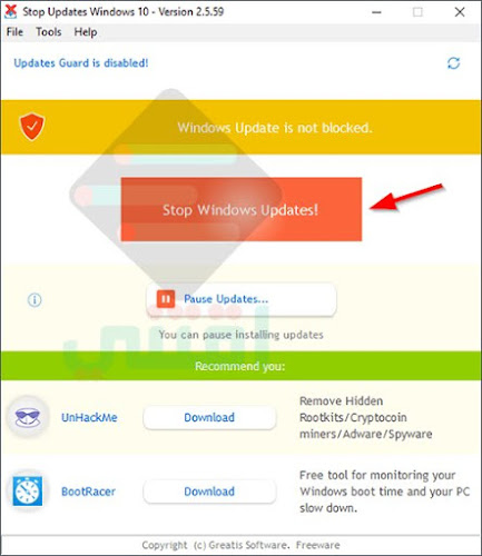 برنامج ايقاف تحديثات ويندوز 10 نهائيا Stopupdates10