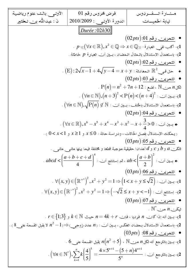 تمارين ومسائل محلولة في المنطق ـ أولى علوم تجريبية باك Pdf