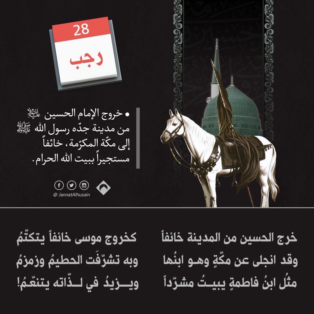 حفيدة الهواشم On Twitter في تاريخ ٨ ذي الحجه يوم التروية من سنة ٦٠ هـ خروج الإمام الحسين ع من مكة إلي كربلاء مودعا مدينة جده رسول الله ص