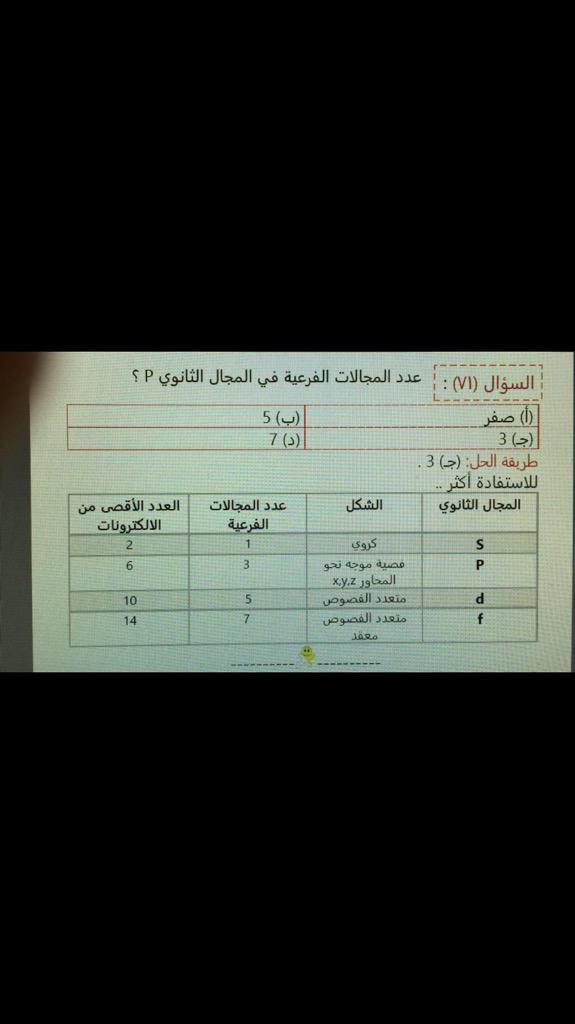 طموح القدرات On Twitter الجواب د عدد المجالات الفرعية في المجالات الثانوية S 1 P 3 D 5 F 7 أما عدد الإلكترونات فنضرب هذه الأرقام بـ 2