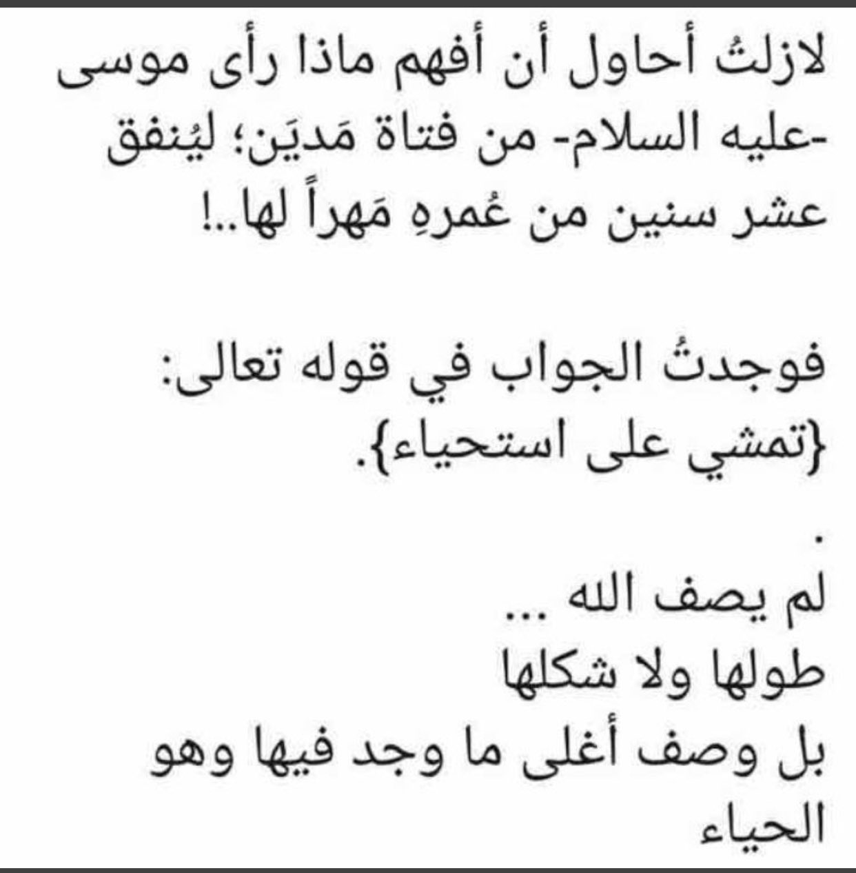 On Twitter جمال البنات في حشمتها وحجابها واستحيائها اسمع قصة موسى عليه السلام مع فتاة مدين وتعرفون جوهرة البنت وعفتها وأدبها واصالتها Https T Co Ef4ndosnkh
