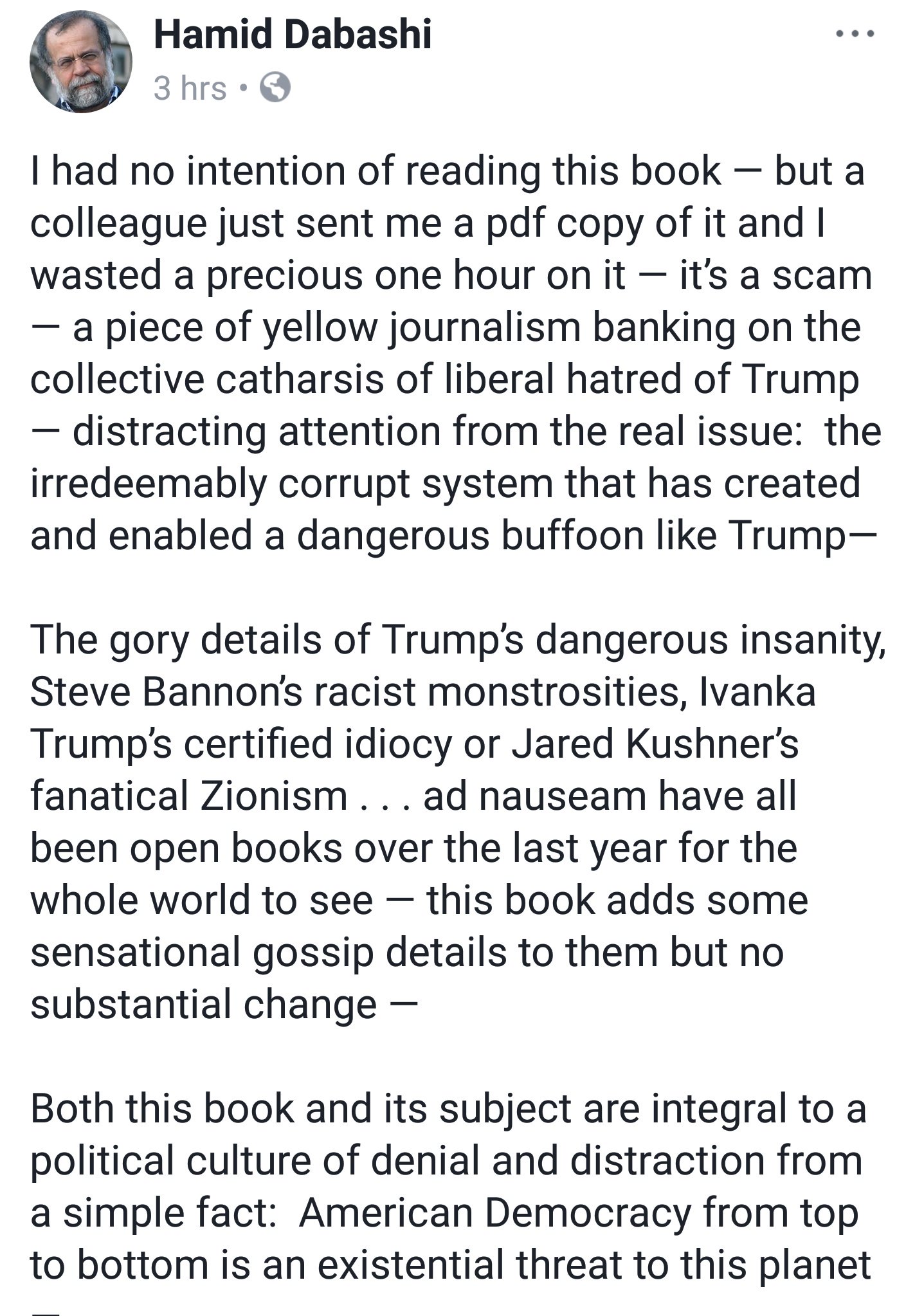 إبراهيم عرب Ibrahim Arab On Twitter تعليق أستاذنا حميد دباشي على كتاب نار وغضب لمايكل وولف Fire And Fury باختصار كتاب لا يستحق هدر وقتنا فهو صحافة صفراء ومليء بالنميمة Https T Co Av9vcsbcqw