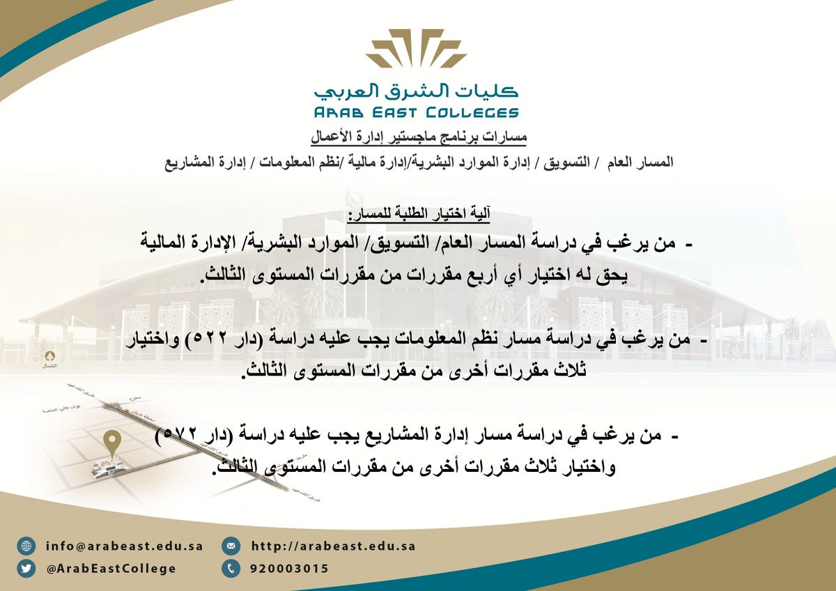 كليات الشرق العربي On Twitter مسارات ماجستير إدارة الأعمال لدينا هي إدارة عامة إدارة مالية تسويق إدارة الموارد البشرية إدارة المشاريع نظم المعلومات Https T Co Dihc3b0yoq