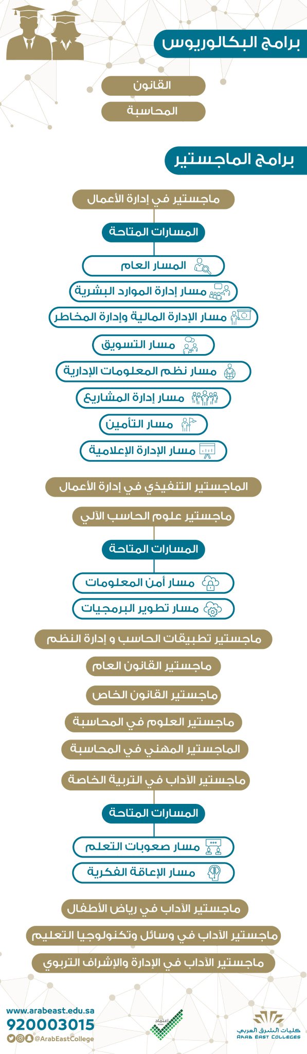 كليات الشرق العربي On Twitter تقدم كليات الشرق العربي برنامجي 1 ماجستير علوم الحاسب مسار أمن المعلومات مسار تطوير البرمجيات 2 ماجستير تطبيقات الحاسب وإدارة النظم للتسجيل Https T Co Tgqkimz4ww الرقم الموحد 920003015 Https T Co