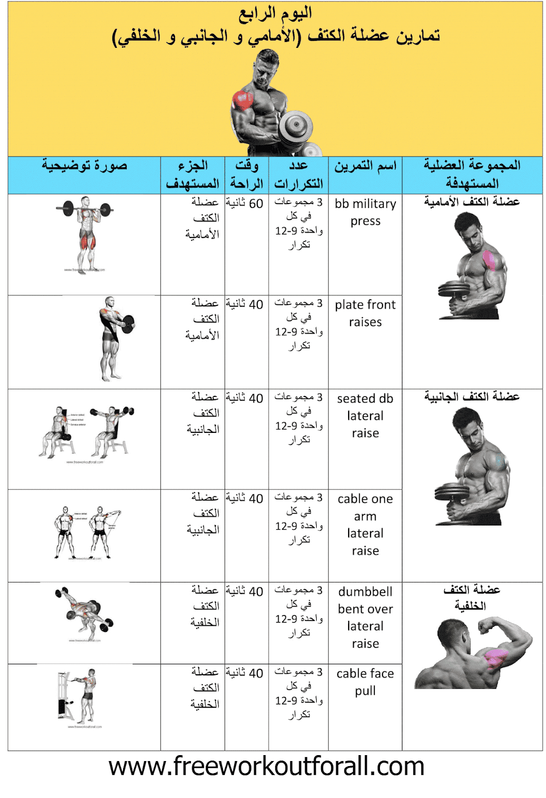 أقوى جدول تمارين كمال اجسام 4 أيام
