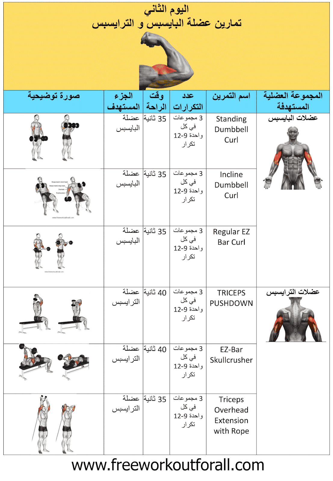 جدول تمارين كمال الاجسام للمبتدئين بالصور كامل Myeasymuscles