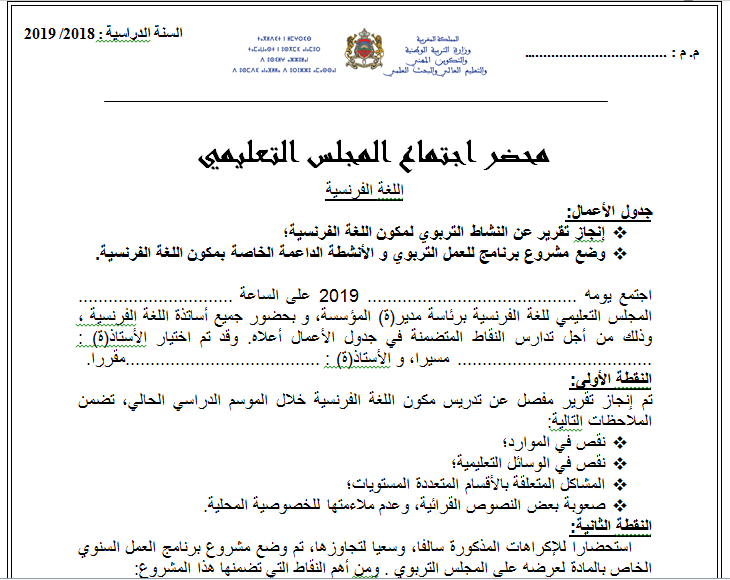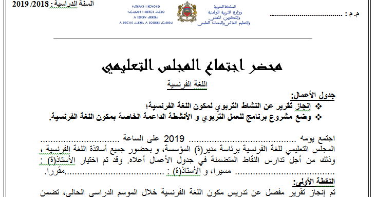 محضر اجتماع المجلس التعليمي الخاص باللغة الفرنسية