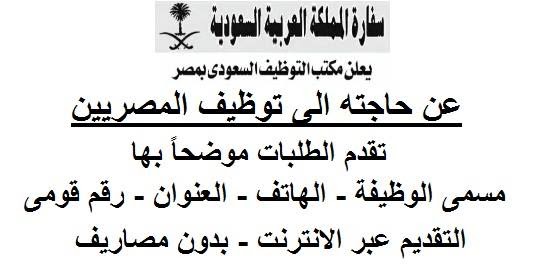 وظائف سفارة المملكة العربية السعودية للمصريين بتاريخ 9 04 2016