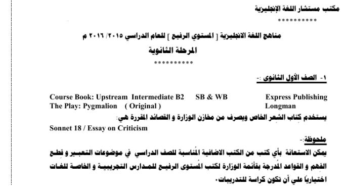 توزيع منهج اللغة العربية 2015 2016 للمرحلة الاعدادية ابناؤنا فى الخارج الامتحان التعليمى