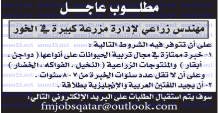 وظائف مهندس زراعي قطر 2017 وظائف شاغرة فى قطر